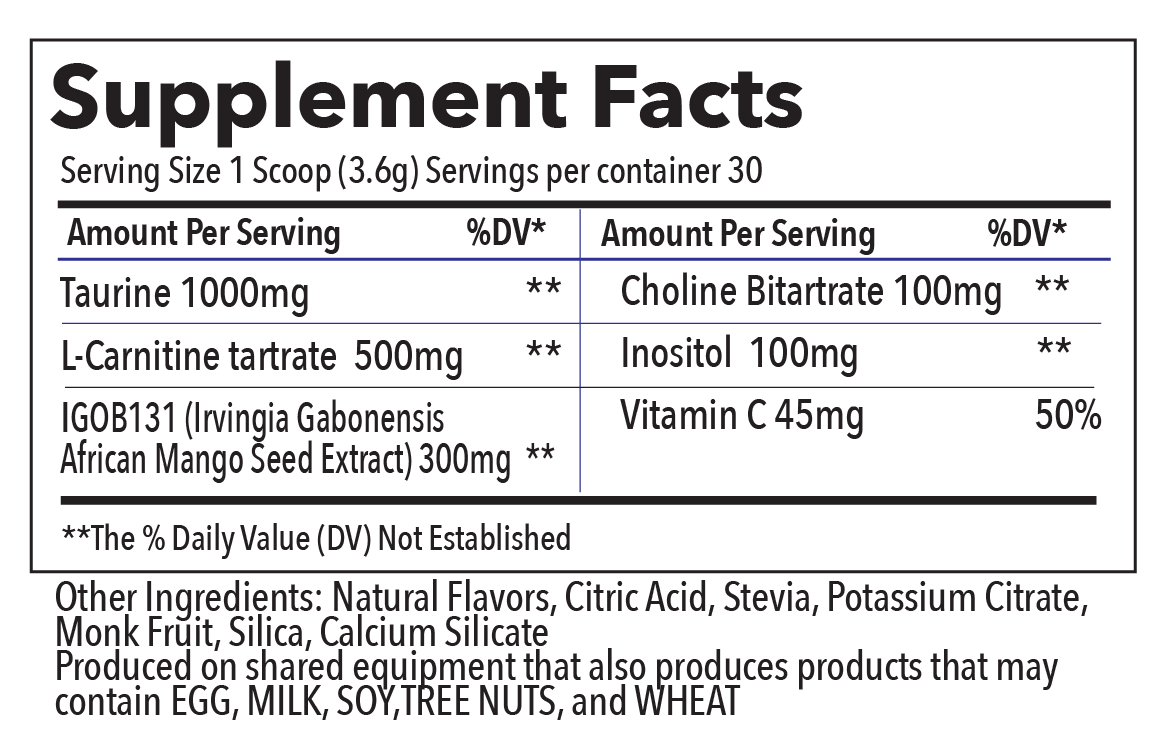 All natural flavors / Contains African Mango Seed Extract IGOB 131 / Sugar Free /